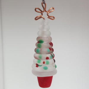 Glass Christmas Tree Ornament, Hanging - Frosted Red and Green Speckle