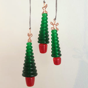 Glass Christmas Tree Ornament, Hanging - Green and Red