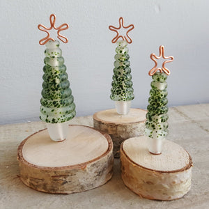 Glass Christmas Tree Ornaments, set of 3 - Frosted Green Speckle