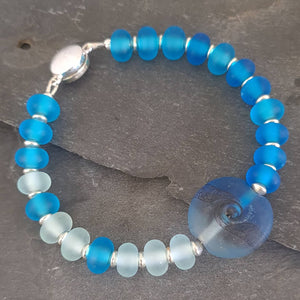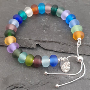 Mae, Frosted Glass and Silver Adjustable Bracelet - Gradient Collection
